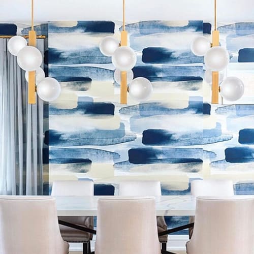 River wallpaper in blue by emma hayes wallpaper designer.